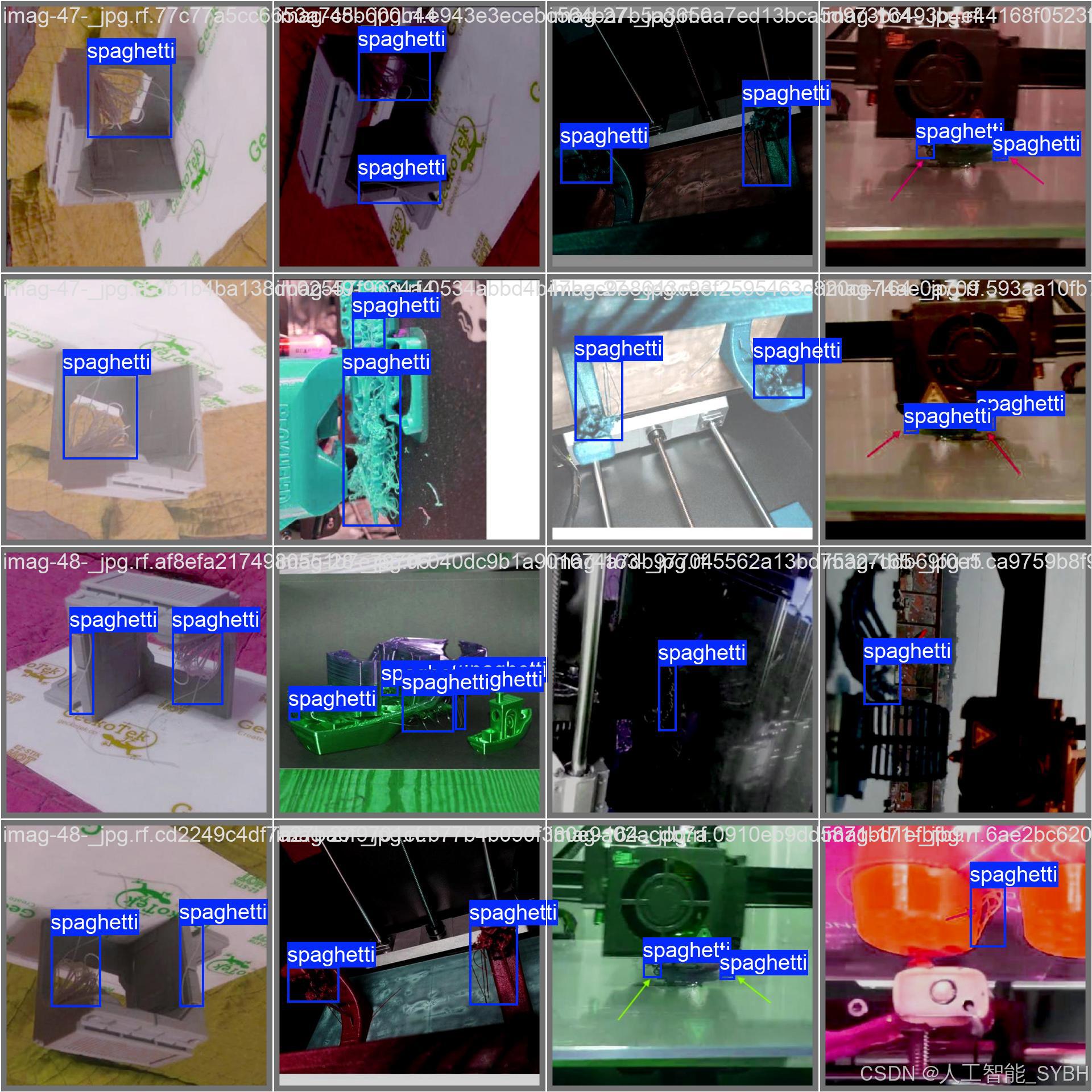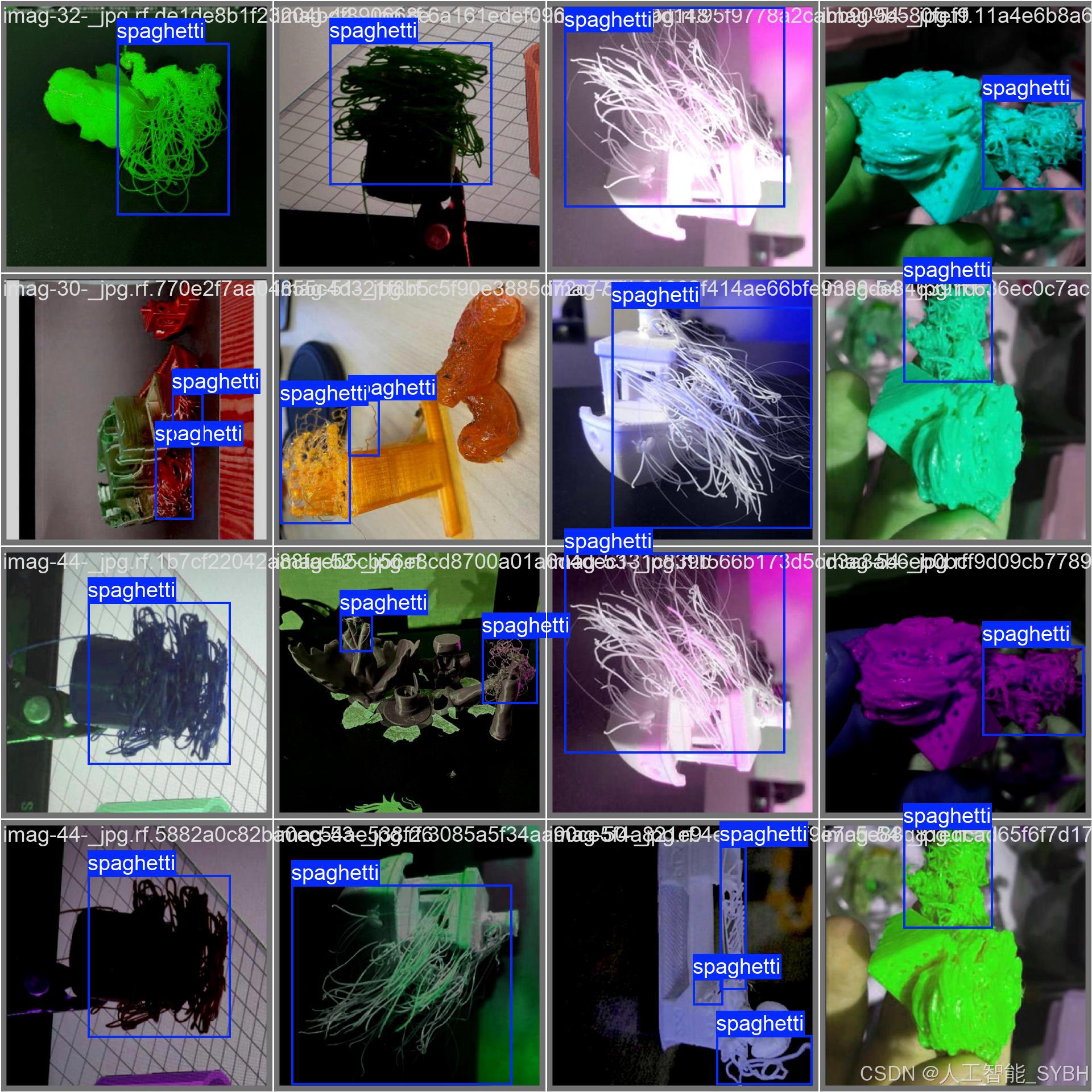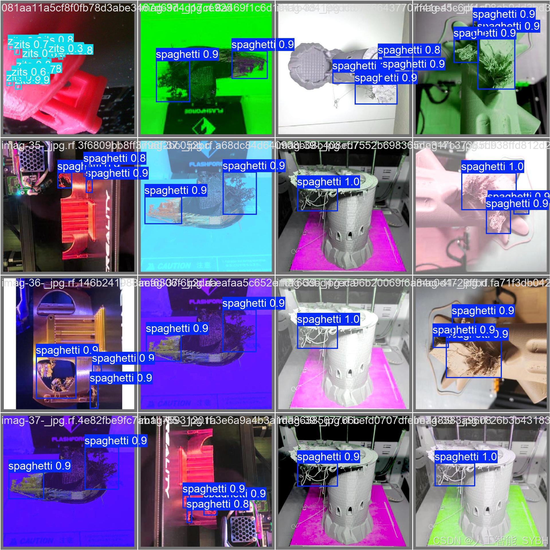 本项目基于YOLOv8深度学习框架,开发了一套专门用于3D打印质量检测的智能视觉系统。系统能够准确识别和分类三种常见的3D打印缺陷:spaghetti(杂乱丝状缺陷)、zits(表面凸点缺陷)和stringing(拉丝缺陷)。通过5870张高质量标注图像(训练集4696张,验证集587张,测试集587张)的训练,模型实现了对细微打印缺陷的精确检测。