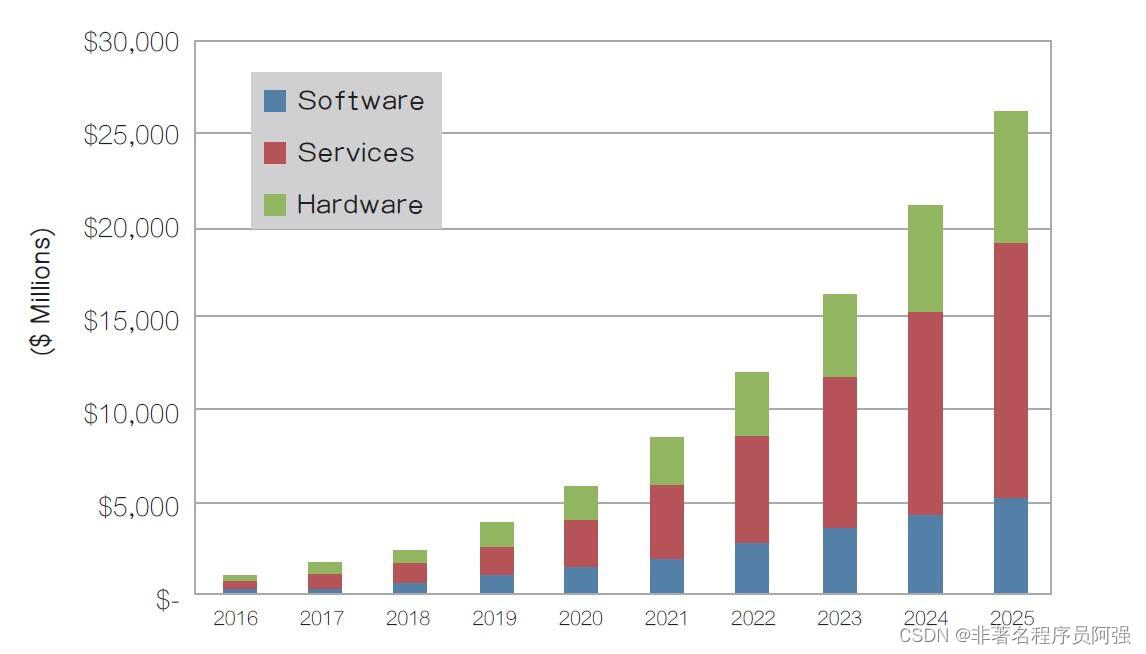 图1 2016~2025年,嵌入式视觉应用的硬体、软体和服务市场将以25%的速度成长。
