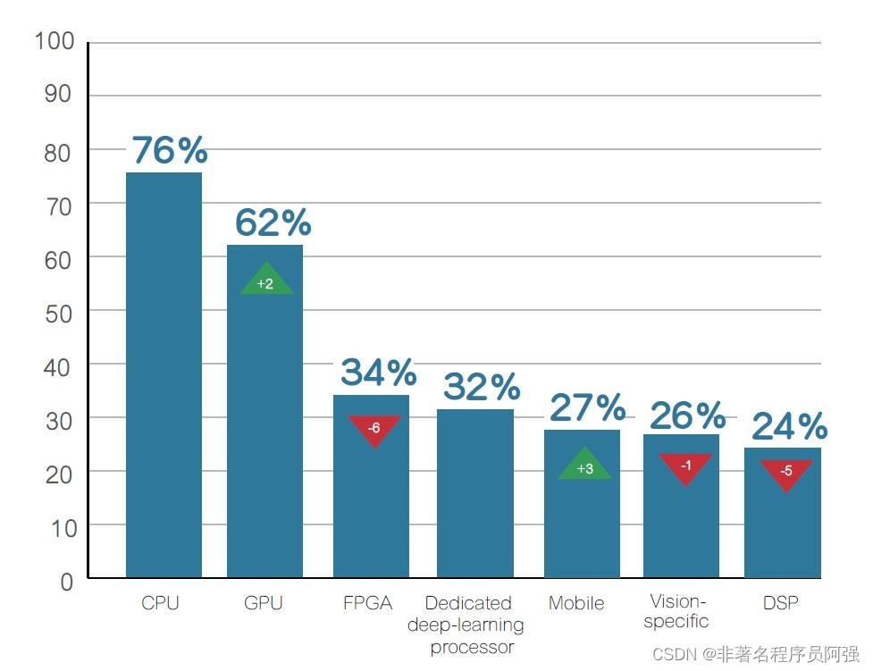 在嵌入式视觉联盟的年度开发者调查中,87%的调查回应者表示已经或打算在其产品设计中采用深度学习神经网路来实现电脑视觉方面的功能。在软体发展平台和演算法方面,对于非神经网路的视觉演算法任务,最流行的软体语言是C++,使用最广的演算法库是开源的OpenCV、MATLAB和CUDA也有不少的用户。而对于采用深度学习的视觉演算法任务,Google的TensorFlow是最流行的神经网路创建、训练、评估和部署软体框架。