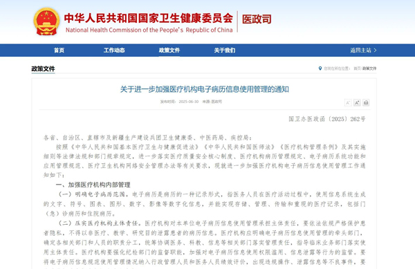 《关于进一步加强医疗机构电子病历信息使用管理的通知》