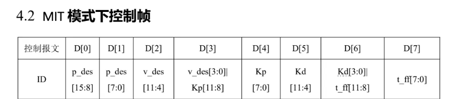 首先来说说MIT协议,MIT其实就是一种与电机约定好的一种格式,它基于CAN,与电机约定传输的八个数据字节都传输的是什么内容。