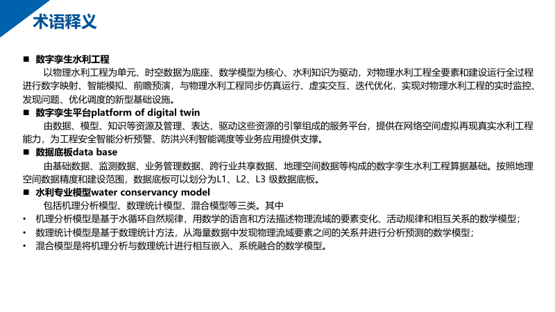 - 术语释义:明确数字孪生水利工程、数据底板等核心术语定义。