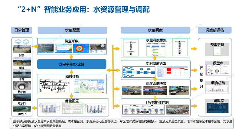- 核心应用:“2+N” 智能业务应用,含流域防洪、水资源管理与调配两大核心业务及 N 项拓展业务。