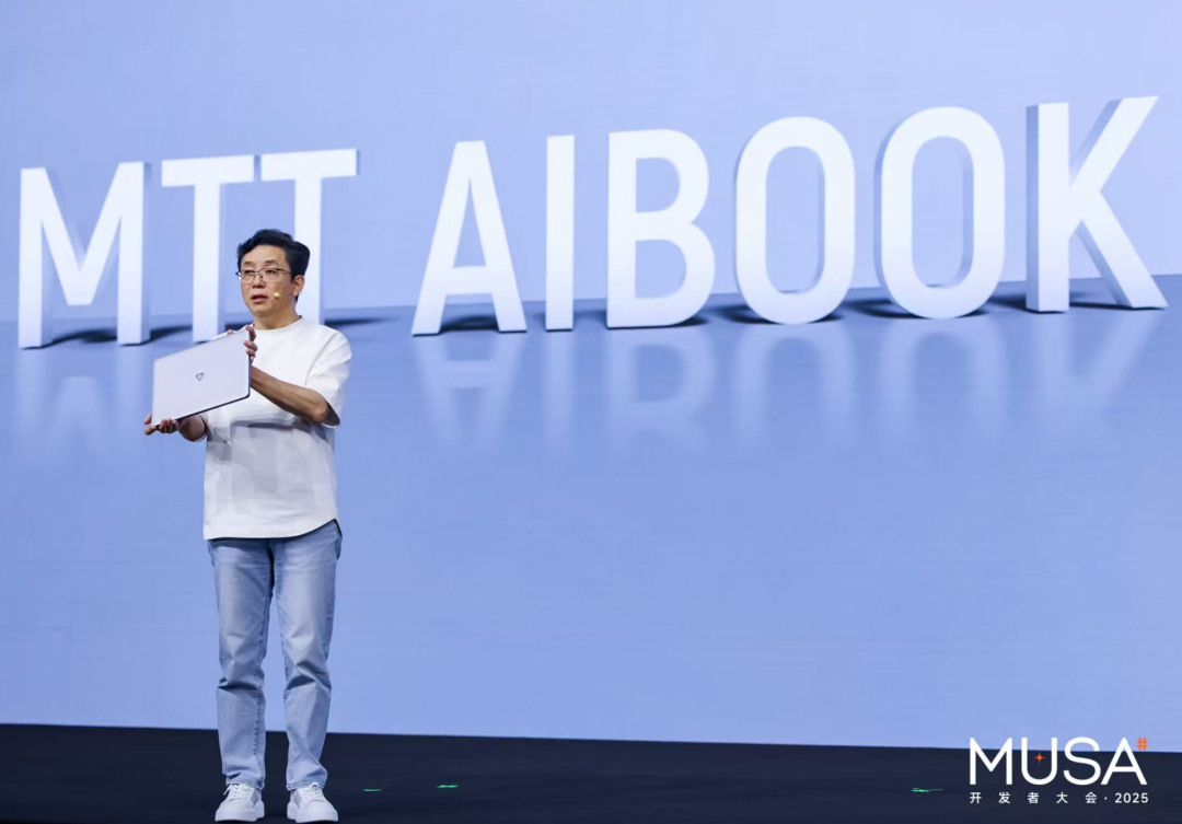 发布AI算力本,提供“开箱即用”的开发体验:作为连接开发者与MUSA生态的核心入口,MTT AIBOOK搭载自研“长江”智能SoC,提供高达50TOPS的端侧AI算力,实现从芯片、驱动到开发环境的全栈整合,实现专业AI开发的“开箱即用”,打破Linux开发、Windows办公与Android应用之间场景壁垒,将AI能力转化为人人可及生产力,赋能开发者在AI时代成“超级个体”。