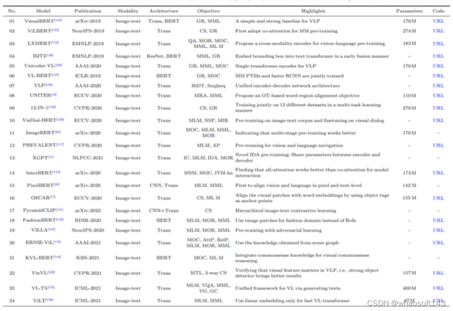 表格2. 该综述论文涉及到的多模态预训练大模型概览