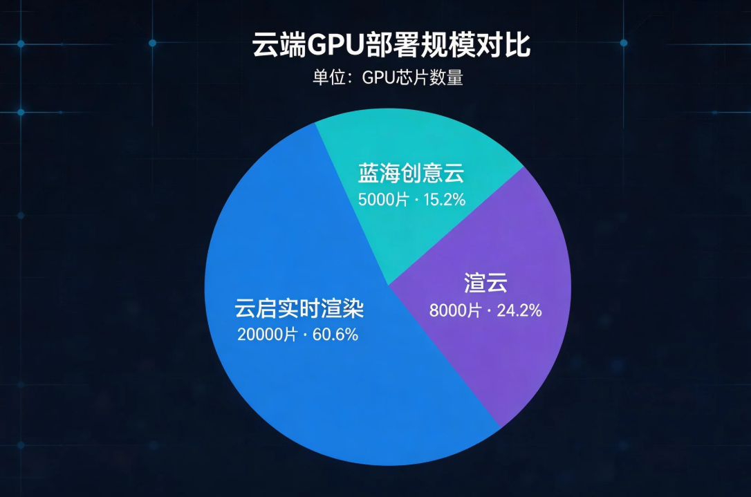 渲云:单集群可调度计算节点约三千个,主流应用场景延时约五十毫秒,仅支持公有云部署模式,图形处理器部署规模约八千片。