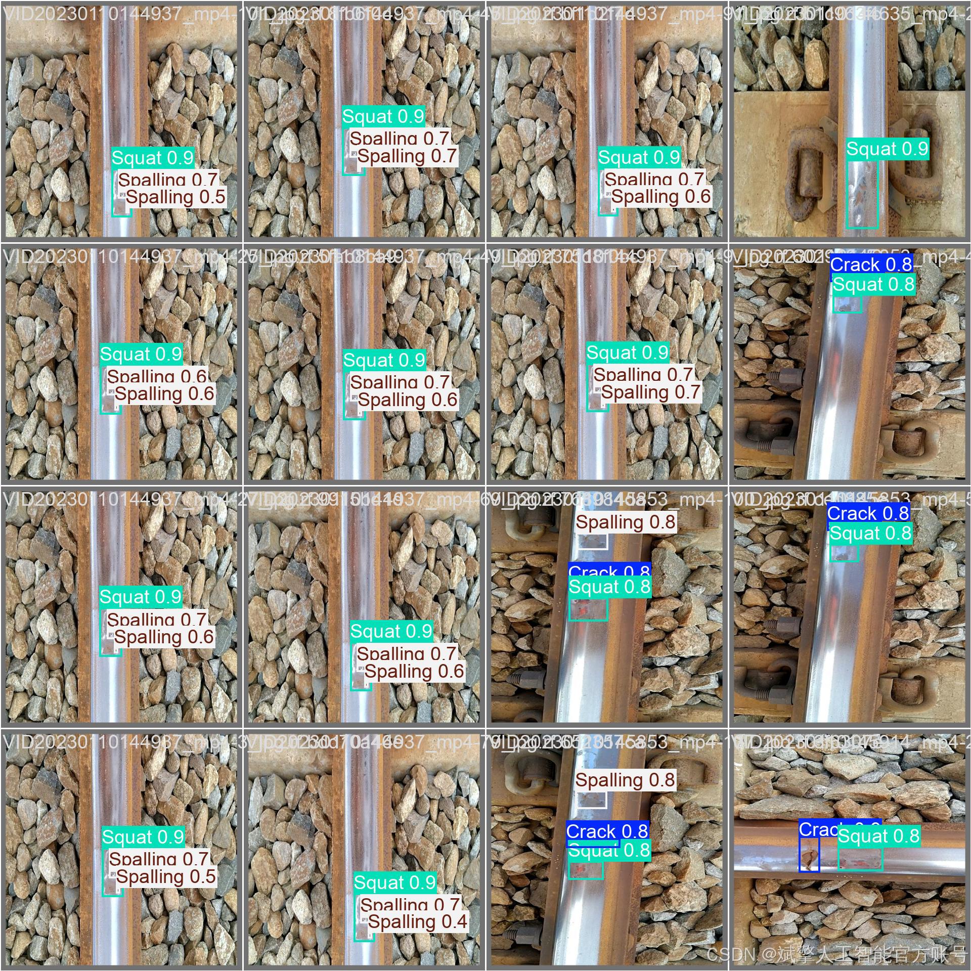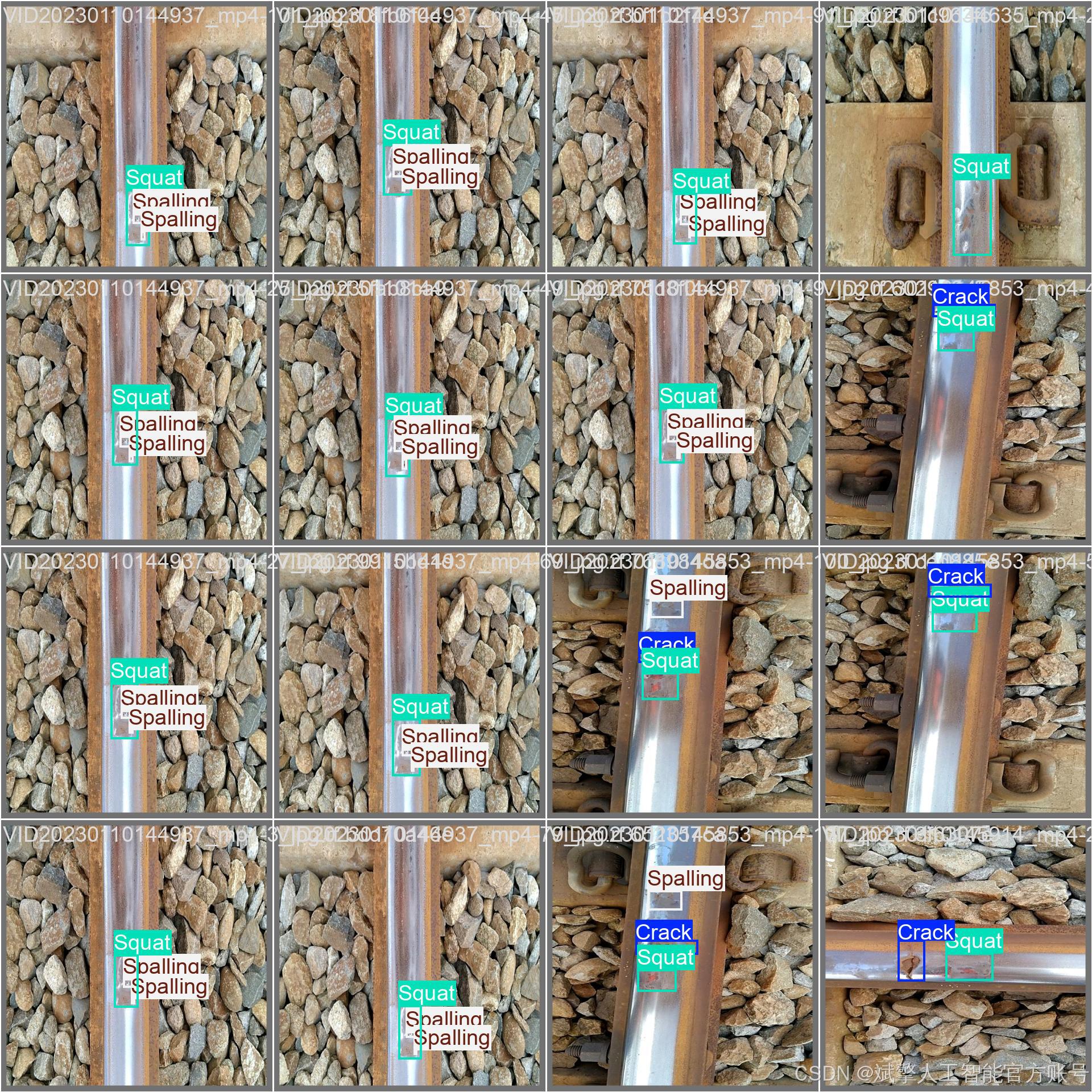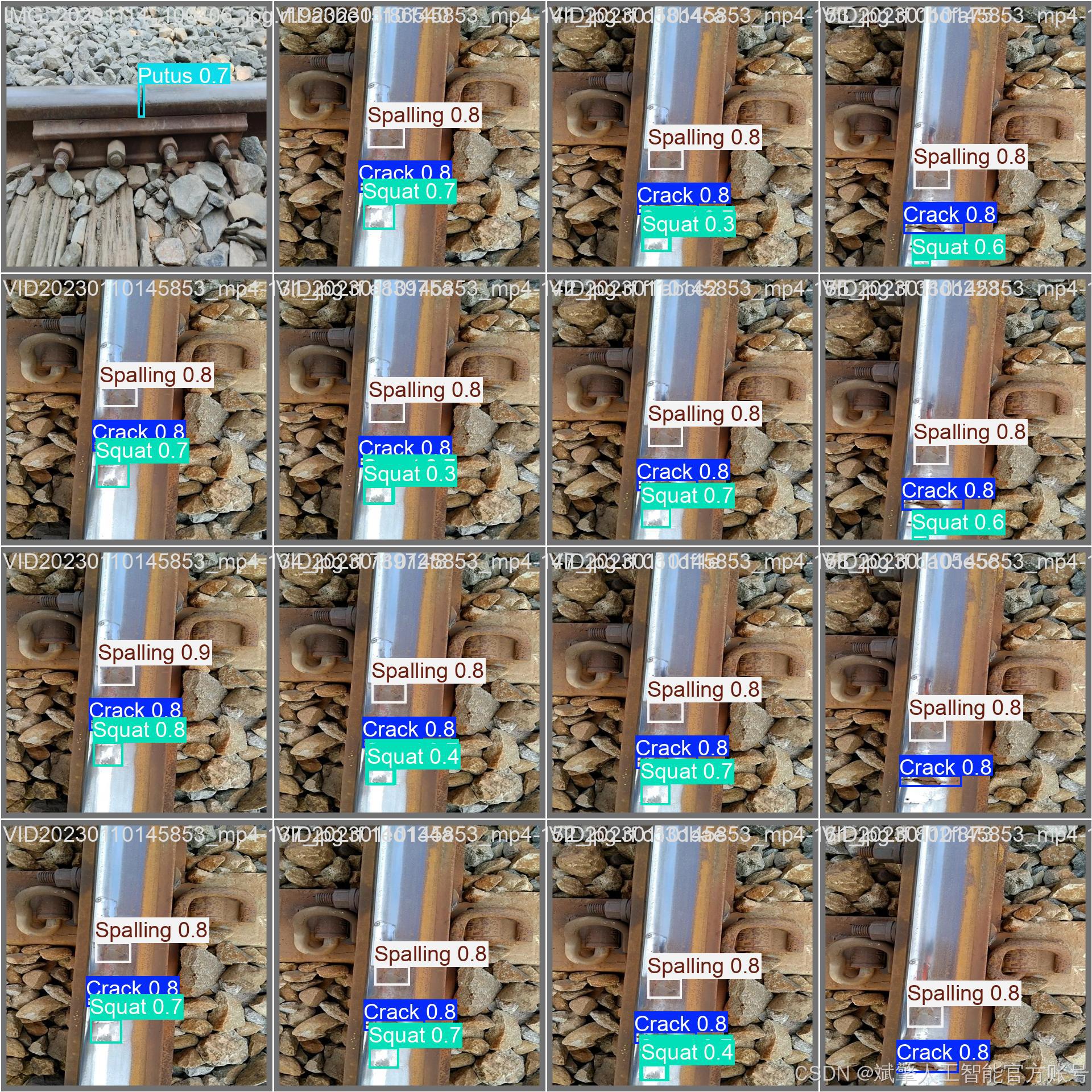 铁路轨道作为轨道交通的核心基础设施,其健康状况直接影响列车运行安全。长期服役过程中,轨道易出现裂缝(Crack)、断裂(Putus)、表面剥落(Spalling)和压溃(Squat)等缺陷,若不及时处理可能引发重大事故。传统检测依赖人工巡检,存在效率低、漏检率高的问题。近年来,深度学习技术(如YOLO系列模型)在目标检测领域展现出显著优势,为自动化缺陷识别提供了新思路。